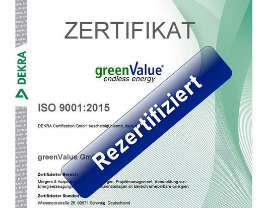 greenValue Qualitätsmanagement System erfolgreich rezertifiziert